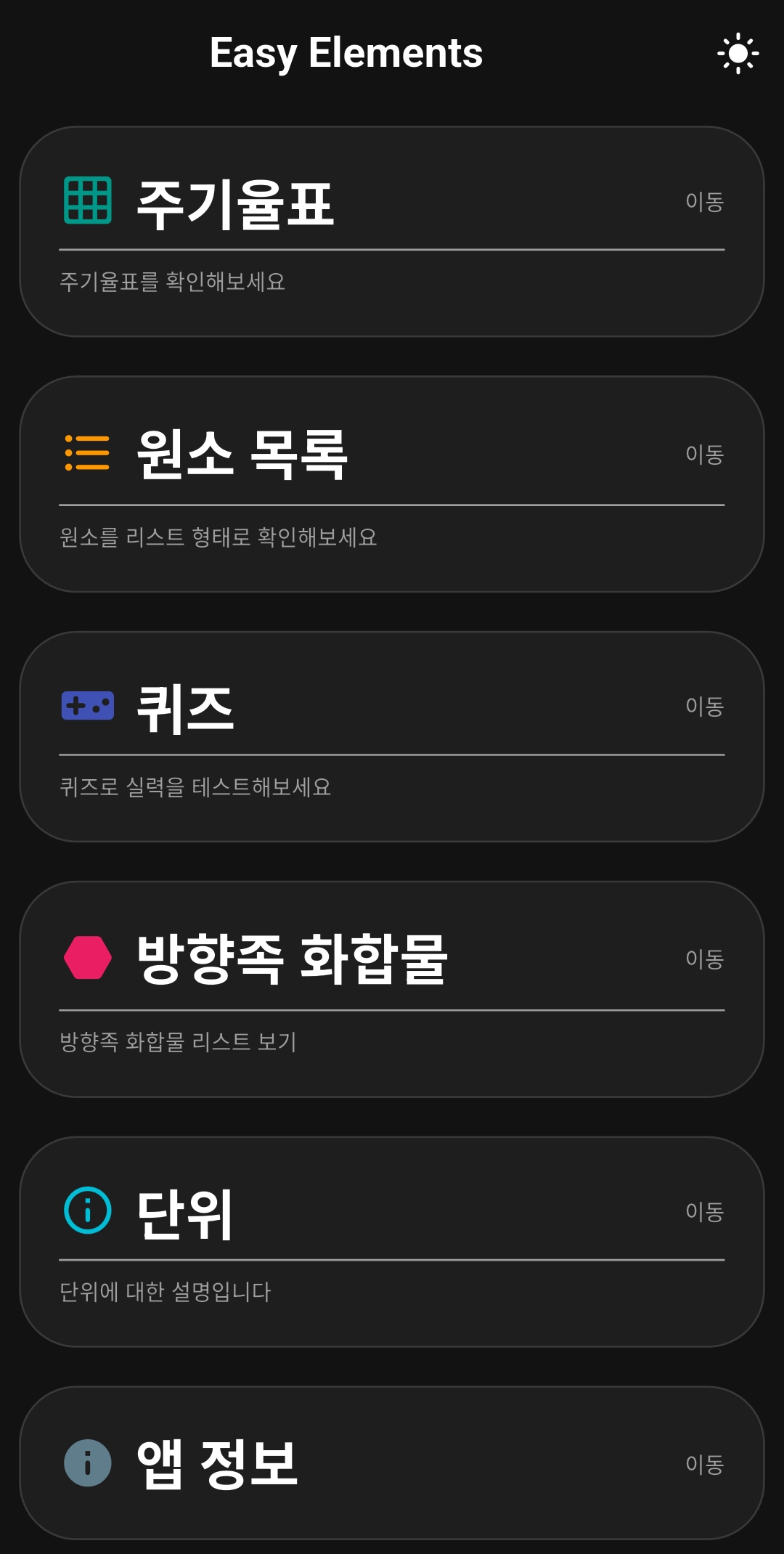 화학의 세계를 가장 쉽고 아름답게 탐험하세요! Easy Elements는 학생, 교사, 그리고 과학 애호가를 위해 완전히 새롭게 리뉴얼되었습니다.